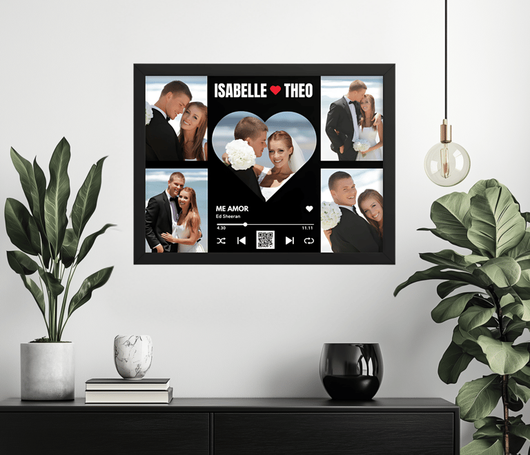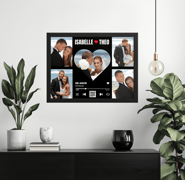 Affichez votre chanson préférée d’une manière unique et élégante ! Personnalisez avec le titre, l’artiste et les photos qui vous tient à cœur pour capturer un souvenir en musique.