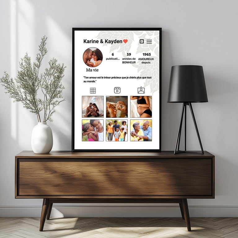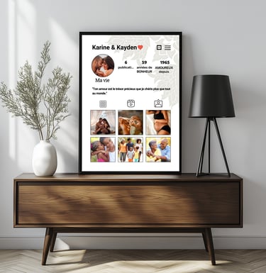 Mettez en avant vos plus beaux souvenirs avec une affiche personnalisée inspirée du feed Instagram ! Ajoutez vos propres photos, légendes et détails pour recréer un moment unique à votre image. Parfaite pour immortaliser une amitié, une histoire d’amour ou un instant inoubliable, cette création apportera une touche tendance et moderne à votre décoration.